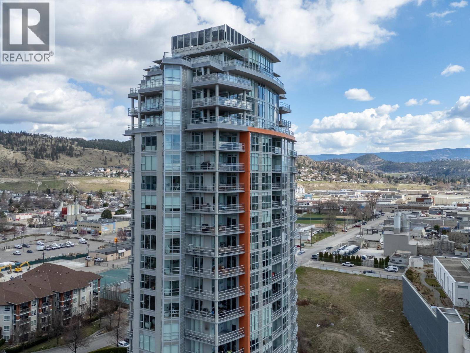 A premier corner location on Sunset Drive with southwest exposure that fills the home with natural light from morning onward. This 2 bedroom plus den, 2.5 bathroom residence showcases sweeping views of downtown, the Water Street entertainment district, local festivals, surrounding mountains, and expansive 180 degree lake views including the Bennett Bridge. Situated on the 15th floor, the spacious 180+ sq ft wraparound balcony offers multiple vantage points and ample room for a sectional and gas BBQ, ideal for taking the fireworks, sunsets, lake activity and the bustle of Sunset drive. Inside, the home is finished with an oversized island featuring waterfall granite countertops, complementary cabinetry with quartz surfaces, and wood laminate flooring throughout. Floor to ceiling windows in the main living areas ensure the views are always front and center. Additional highlights include two secure heated parking stalls and a storage locker. Residents enjoy access to resort-style amenities including a hot and cold plunge pool, fitness centre, shared kitchen and lounge, BBQ area, meeting room, and bike storage. Pet-friendly living allows 2 dogs, 2 cats, or one of each, with no size restrictions.
