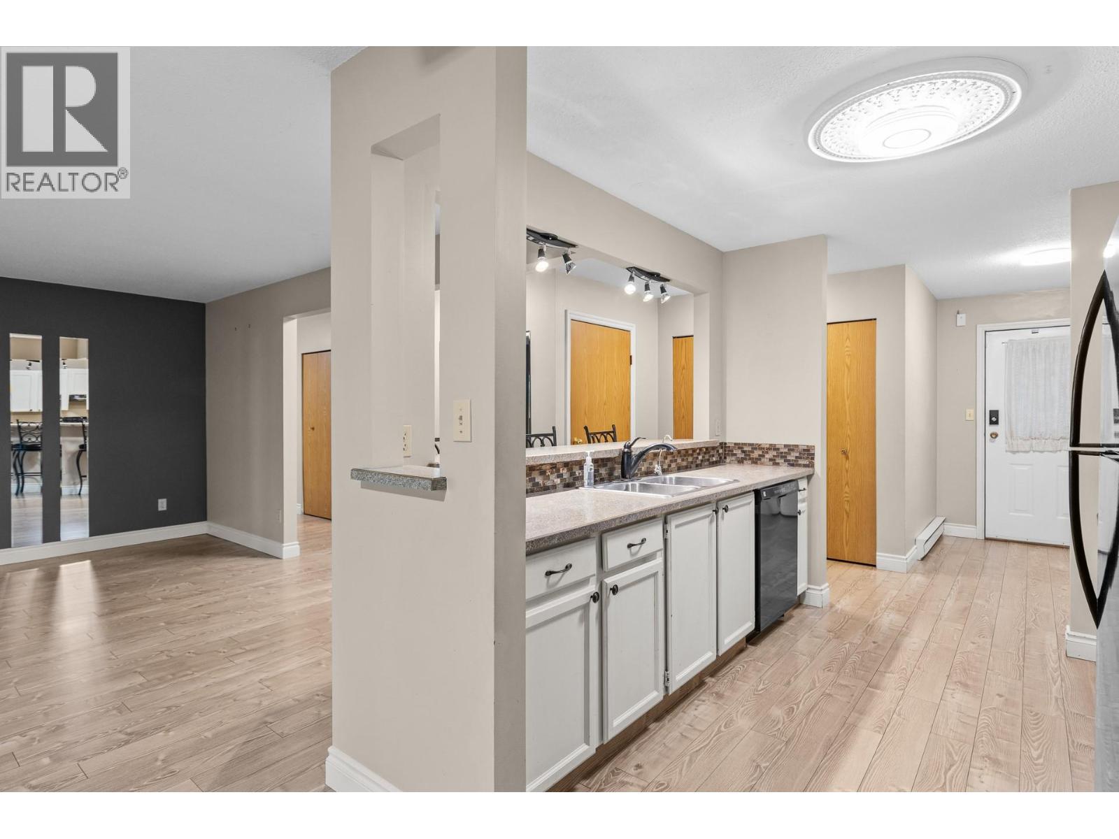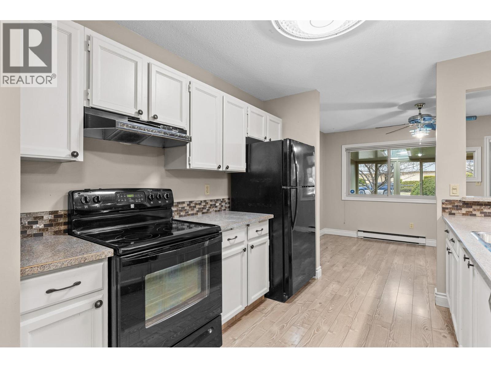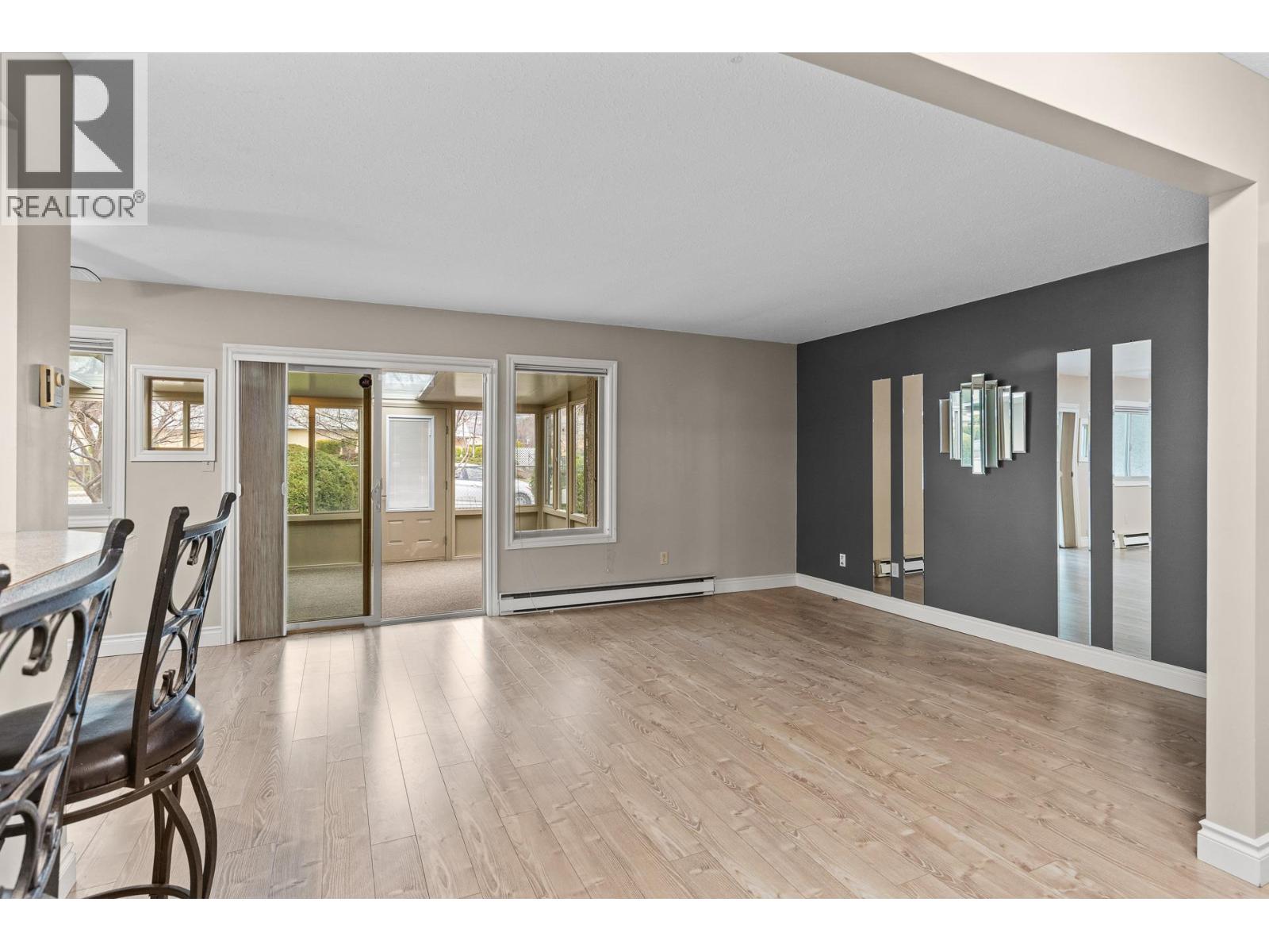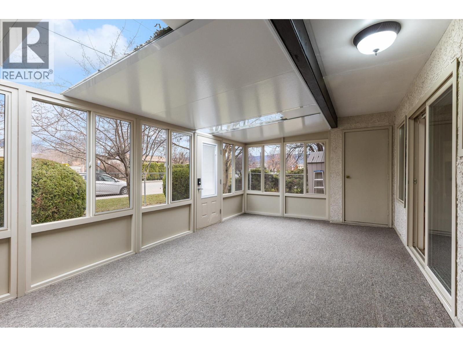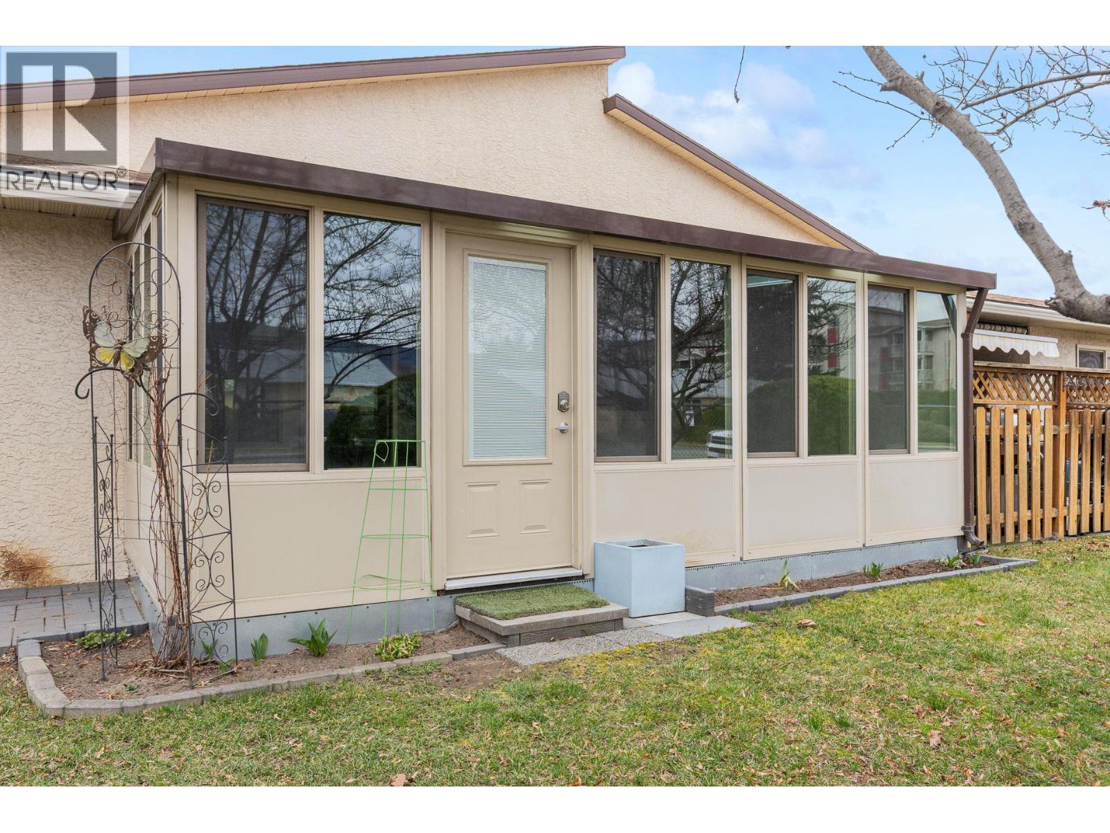 OPEN HOUSE Saturday the 28th 2pm-4pm....Beautifully Updated Rancher Townhome – A True Gem! Bright end unit offering exceptional privacy and natural light, this spacious 2 bedroom, 2 bathroom level-entry, one-story 55+ adult-oriented townhome offers approximately 1,400 sq. ft. of living space including the sunroom—one level living like this is so rare to find! Ideally located within walking distance to shopping, transit, and the Mission Creek Greenway, with a convenient bus route nearby. This home features a hard-to-find open floor plan, laminate flooring, updated trim, newer windows, a newer roof, no Poly B plumbing, and a newer hot water tank, with sunny south-facing exposure perfect for relaxing or entertaining. An absolutely amazing 300 sq. ft. quality-built sunroom adds exceptional living space and includes access to a crawl space and storage area, plus a door leading to the adjacent storage unit complete with a seating area. The updated kitchen showcases black appliances, while the expansive living and dining area offers a sliding glass door to the outdoor space. Enjoy two generous bedrooms, including a king-sized primary with walk-in closet and 3-piece ensuite, a full 4-piece main bathroom with skylight, a separate laundry and storage room off the entry, and covered parking, plus tons of visitor parking including a convenient space right at your door. Such a unique and special opportunity in a well-maintained community. PET RESTRICTIONS: 1 cat or 1 dog under 16'!
