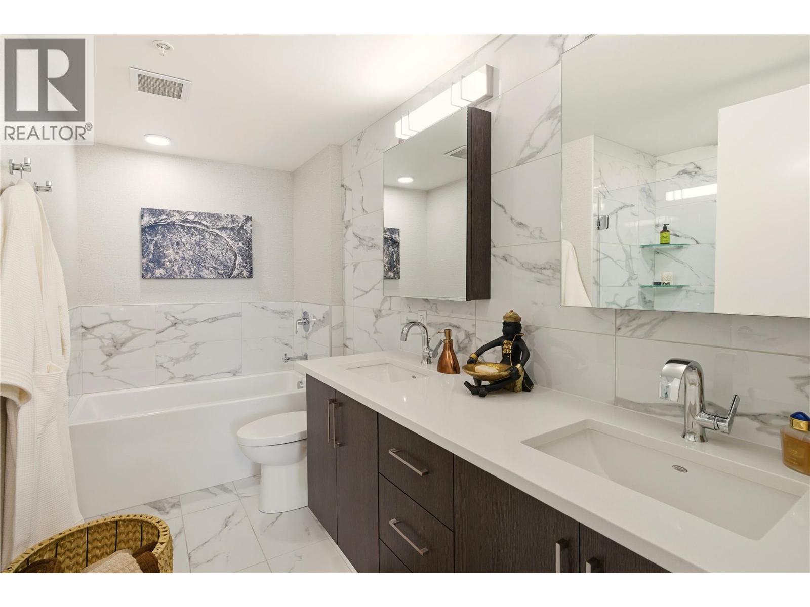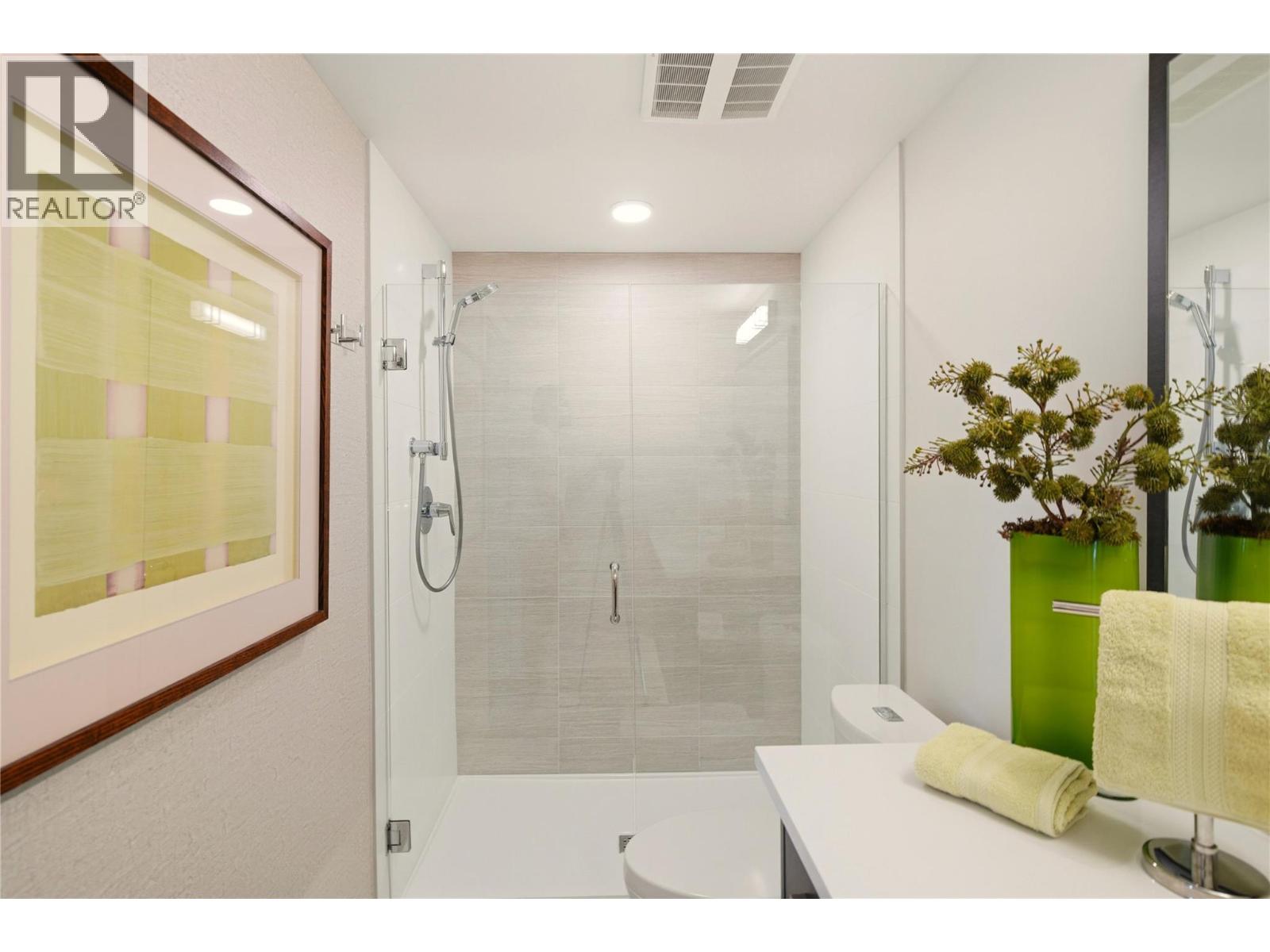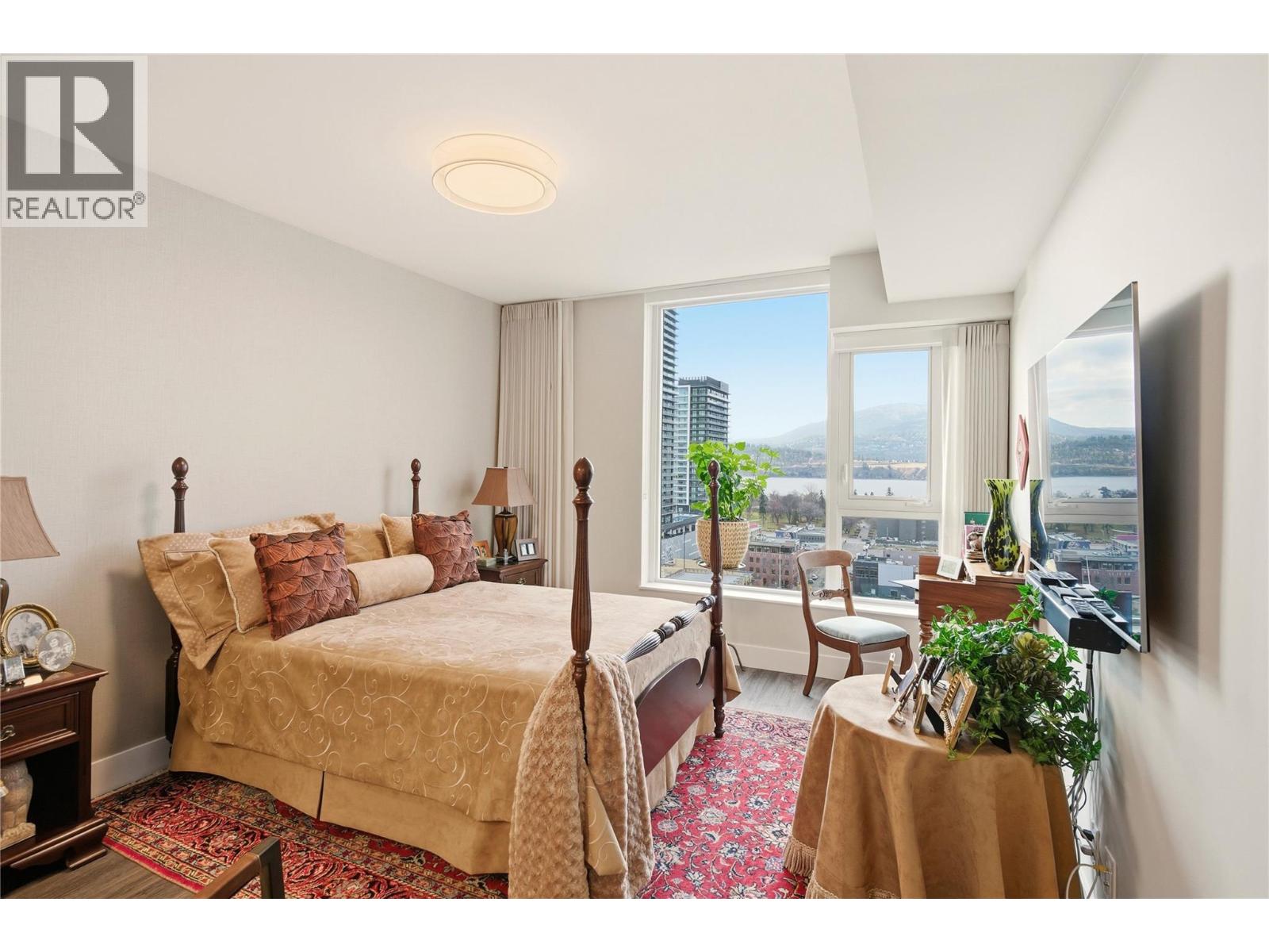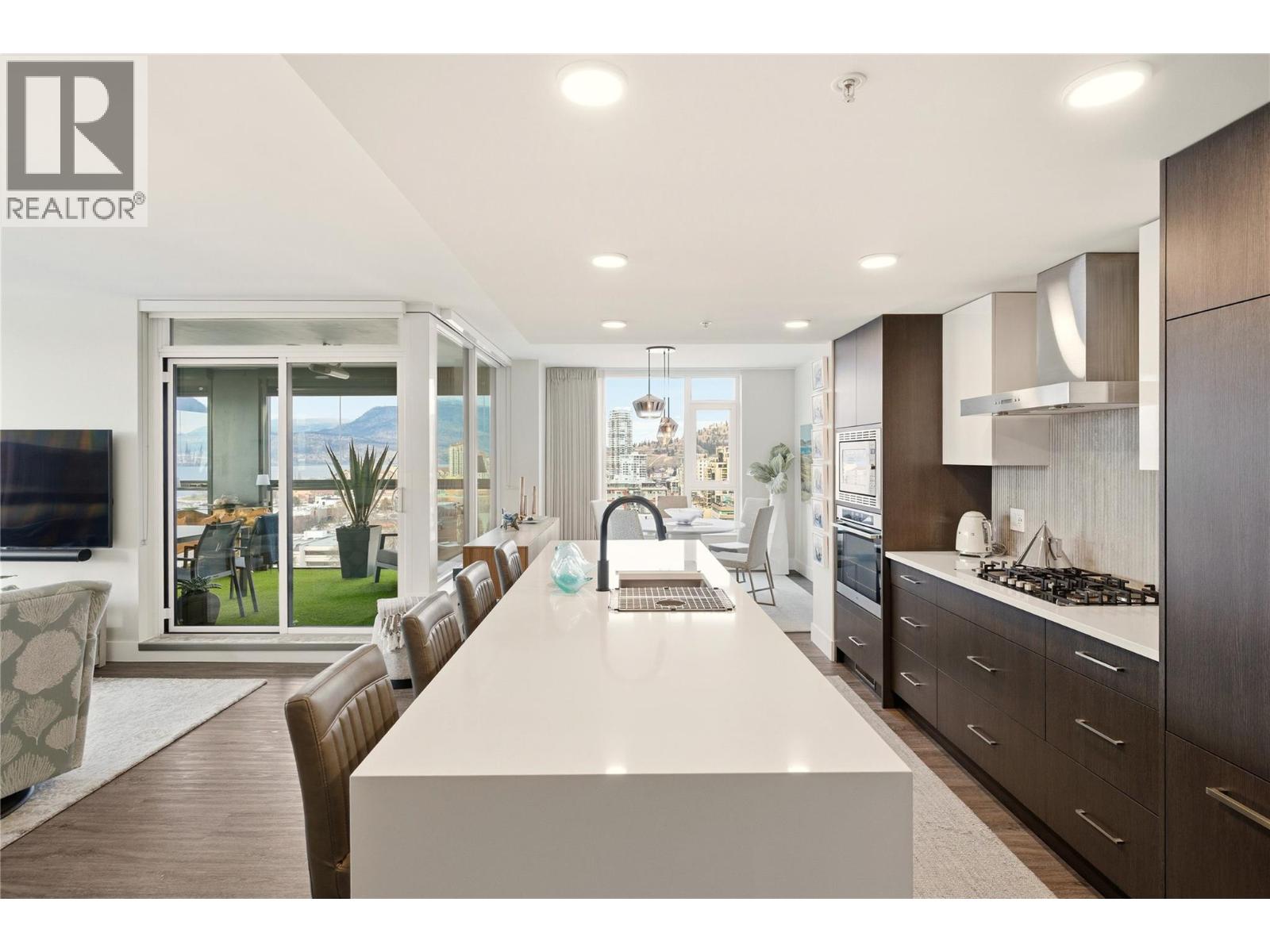 Perched on the 16th floor, this exceptional corner unit situated in the prestigious Ella building showcases luxury high-rise living at its finest. With sweeping lake, mountain, city, and Yacht Club views framed by floor-to-ceiling windows, every room captures the beauty and energy of downtown Kelowna from above. This exclusive 2 bedroom + den, 3 bathroom layout offers ultimate privacy and comfort, with both bedrooms featuring their own ensuites. The unit is in impeccable condition and has been extensively elevated with over $100,000 in premium upgrades, far beyond original developer standards. There is true indoor-outdoor living with the 11’ x 19’ terrace that is enhanced by a custom Lumon glass enclosure. Fully open for summer evenings or have closed for the winter while using the heaters for year-round enjoyment and a seamless extension of your living space. The chef-inspired kitchen features quartz counters, high-end appliances, and sleek European-style cabinetry. Additional highlights include two storage lockers (one being 7’ x 10’), a stunning wine room, thoughtfully designed built-in closets, striking feature walls by Plutos, high-end drapery, and three artistic motorized patio sun shades. There is a guest suite, pet wash, bike facilities, EV charging, and an on-site community director. This must be experienced in person to appreciate the craftsmanship and detail throughout in Kelowna's most sought after building. Contact for the full upgrade list.