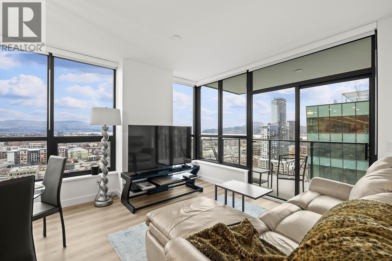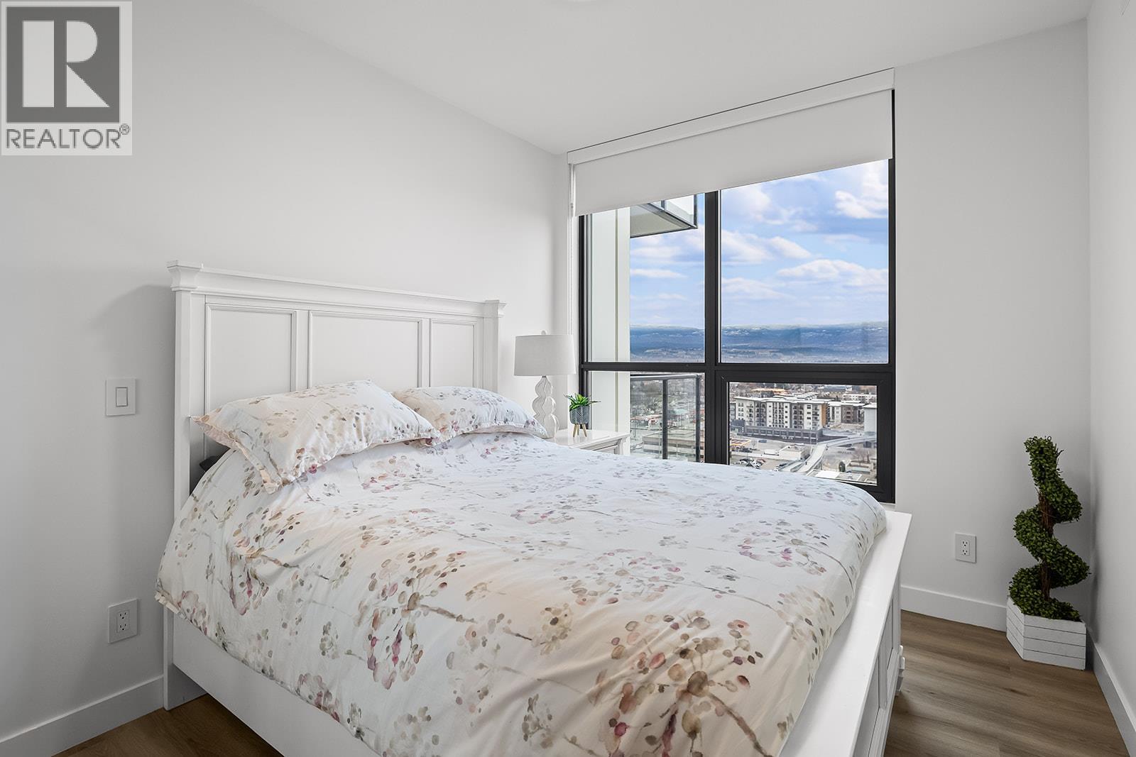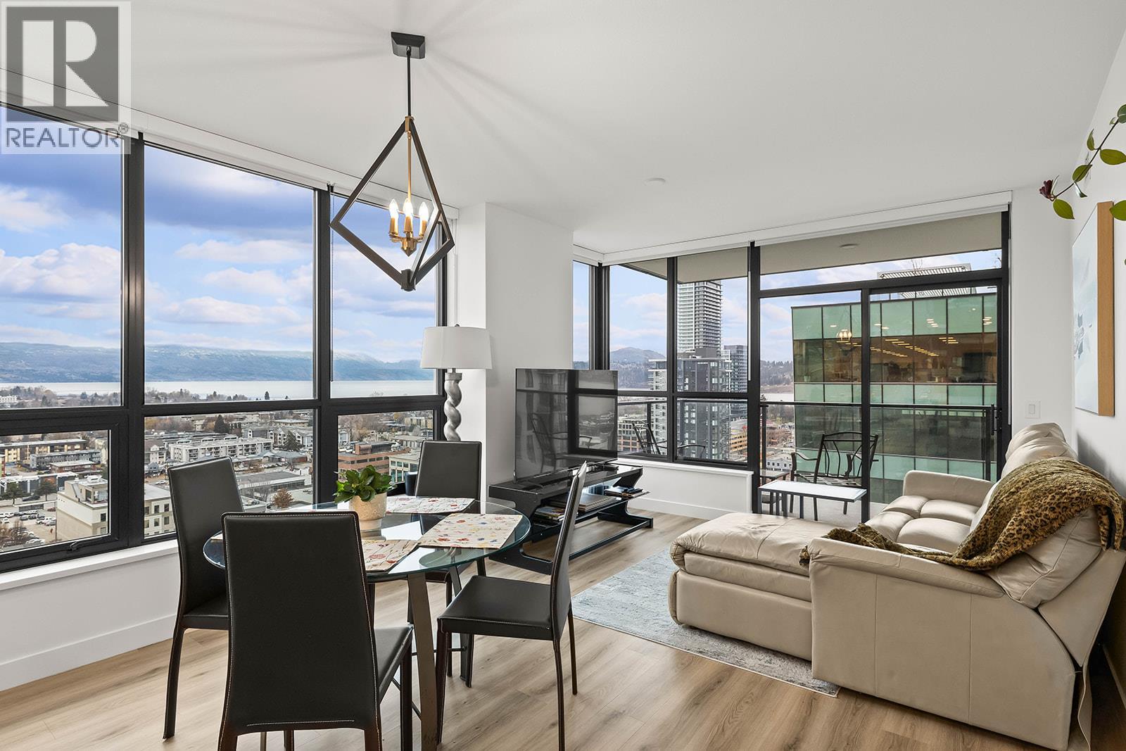 Lake Views and the very best sun exposure from this corner unit. The two bedrooms have upgraded flooring, the primary has a great walk-in closet and both offer beautiful Lake Views. The kitchen features modern flat panel cabinetry with beautiful warm and white colour scheme and upgraded microwave with trim kit. This home has two spacious bathrooms and convenient in suite laundry. Unwind in the evening on your balcony and enjoy sunsets and city lights. Neighbours will be envious of your TWO side by side, secured underground parking stalls and storage unit. This luxury building provides First Class Amenities including infinity sky pool & hot tub, rooftop kitchen with lounge, fitness room, dog run & wash station, rooftop and street level co-work space plus a party room. Get in touch today for your private viewing and treat Yourself to Resort Living and the Ultimate Okanagan lifestyle!!