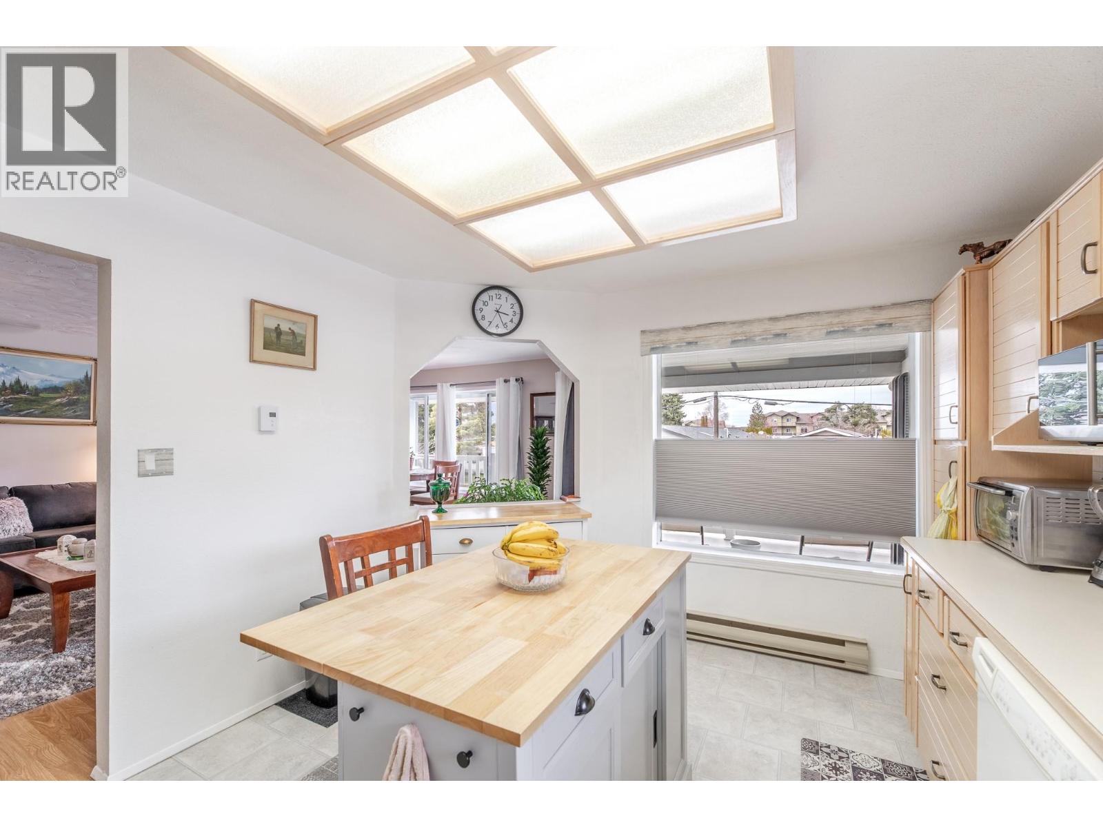 Spacious second-storey unit offering 2 bedrooms and 2 bathrooms, featuring an open and inviting living space. The kitchen is filled with natural light and features a convenient island, along with a charming bay window over the sink that frames beautiful mountain views. Step outside to a covered deck, ideal for relaxing or entertaining. This well-positioned home offers the rare benefit of no shared walls, providing added privacy. Blossom Court is well-maintained strata complex that boasts beautifully manicured grounds, all set on a peaceful, low-traffic street. Conveniently located just minutes from Skaha Lake Park and with easy access to nearby shopping and amenities. Additional features include a covered parking space with a storage unit near by. This is a 55+ community, pet-free, offering a quiet and peaceful lifestyle!