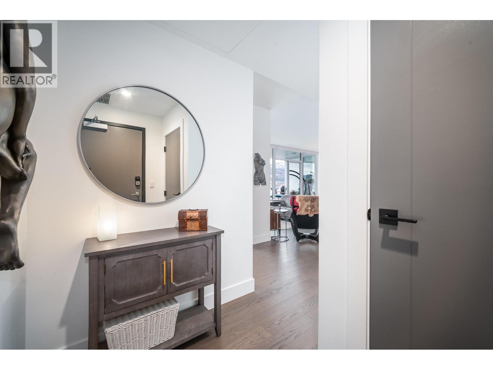 Perched on the 21st floor, this upgraded residence offers exceptional privacy and sweeping views from a large outdoor deck designed for entertaining and relaxation with a natural gas outlet and a truly unobstructed vantage point — a rare combination of elevation, privacy, and outdoor living. Inside, oak hardwood floors and floor-to-ceiling windows create a bright, refined living space that seamlessly blends modern design with smart functionality. The kitchen is a standout with waterfall-edge counters, granite sink, gas range, KitchenAid appliances and combi oven. A built-in bar with dual-zone KitchenAid beverage fridge adds an entertaining hub with a striking LED backlit onyx backsplash. Smart home features are integrated throughout, including touchscreen controls for lighting and music, along with built-in ceiling speakers in the kitchen and primary bedroom. Extra insulation along common walls enhances comfort and quiet. The primary suite offers a spacious walk-in closet and a stylish 3-piece ensuite with glass and tile shower. A generous second bedroom features large floor-to-ceiling windows and a full closet. The main bath includes a 4-piece layout with tile surround to the ceiling. Additional highlights include stacked laundry with added storage, and thoughtful upgrades throughout that elevate everyday living. Resort-style amenities including two pools, hot tub, fitness club with gym and yoga studio, pickleball court, dog park, BBQ and fire pit areas, and more!