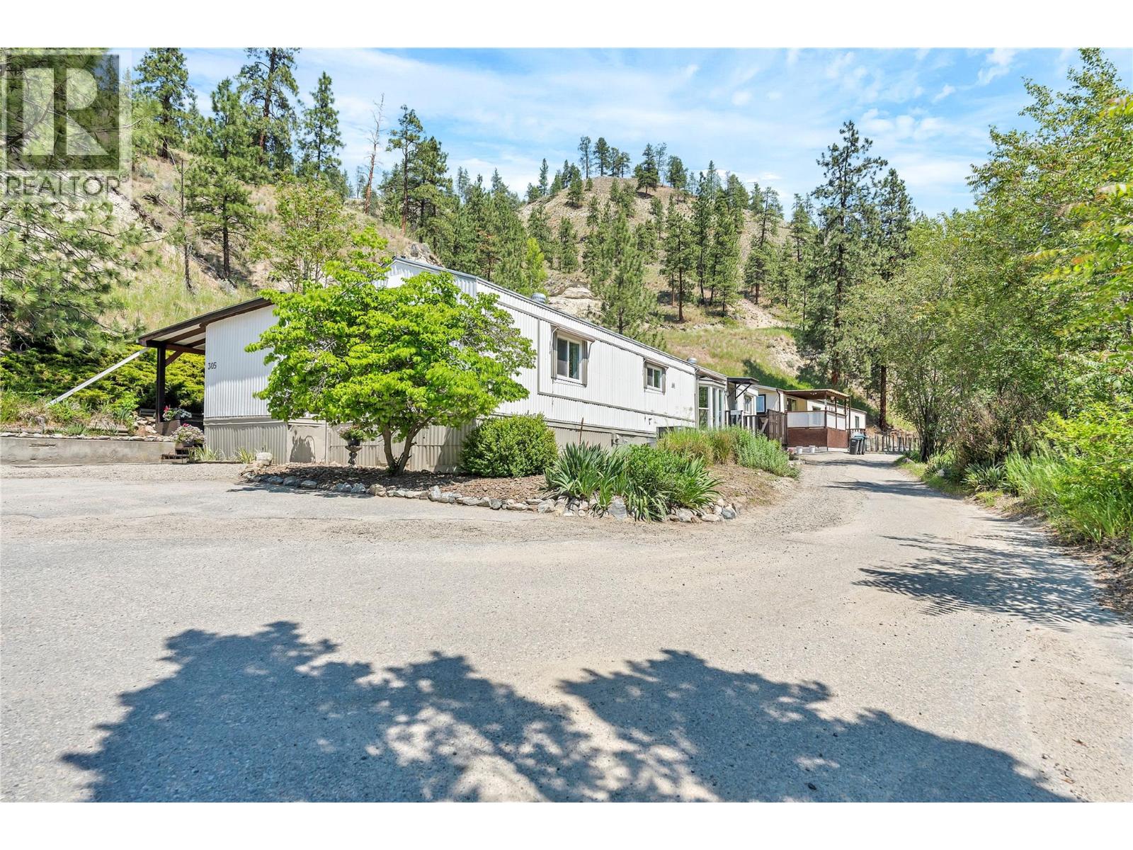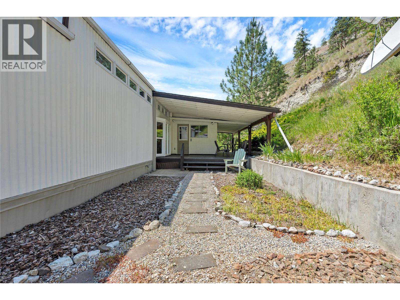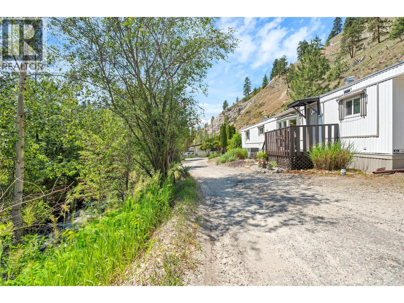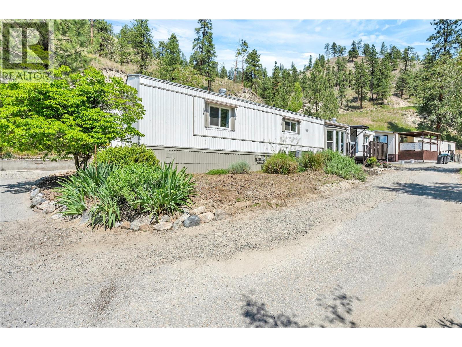 Welcome to Pleasant Valley, one of the most unique mobile home parks in the Okanagan—just a short, level drive to the heart of Penticton. Surrounded by nature and bordered by the ever-flowing, beautiful Penticton Creek, this park offers a peaceful setting unlike any other. This substantially renovated 3-bedroom, 2-bathroom home is tucked away in a private, low-traffic area across the creek, where the soothing sound of water and the natural surroundings create a serene atmosphere. The home feels far from a typical mobile, with its high shed-style ceilings, abundant natural light, and absence of narrow hallways. Inside, the impressive renovations include a new kitchen and bathrooms, updated flooring throughout, fresh interior and exterior paint, modern light fixtures, and plumbing. Outside, the spacious yard is ideal for outdoor living and hobbies, featuring a large covered deck, a flat and private backyard, and even a small patio area overlooking the creek. There is ample parking, and the park also offers RV parking (subject to availability and a monthly fee). Pleasant Valley is a well-managed 55+ community that allows two pets (size restrictions apply).