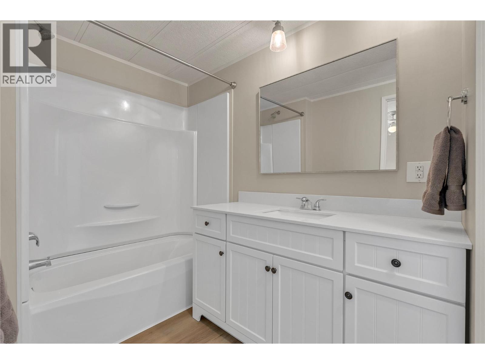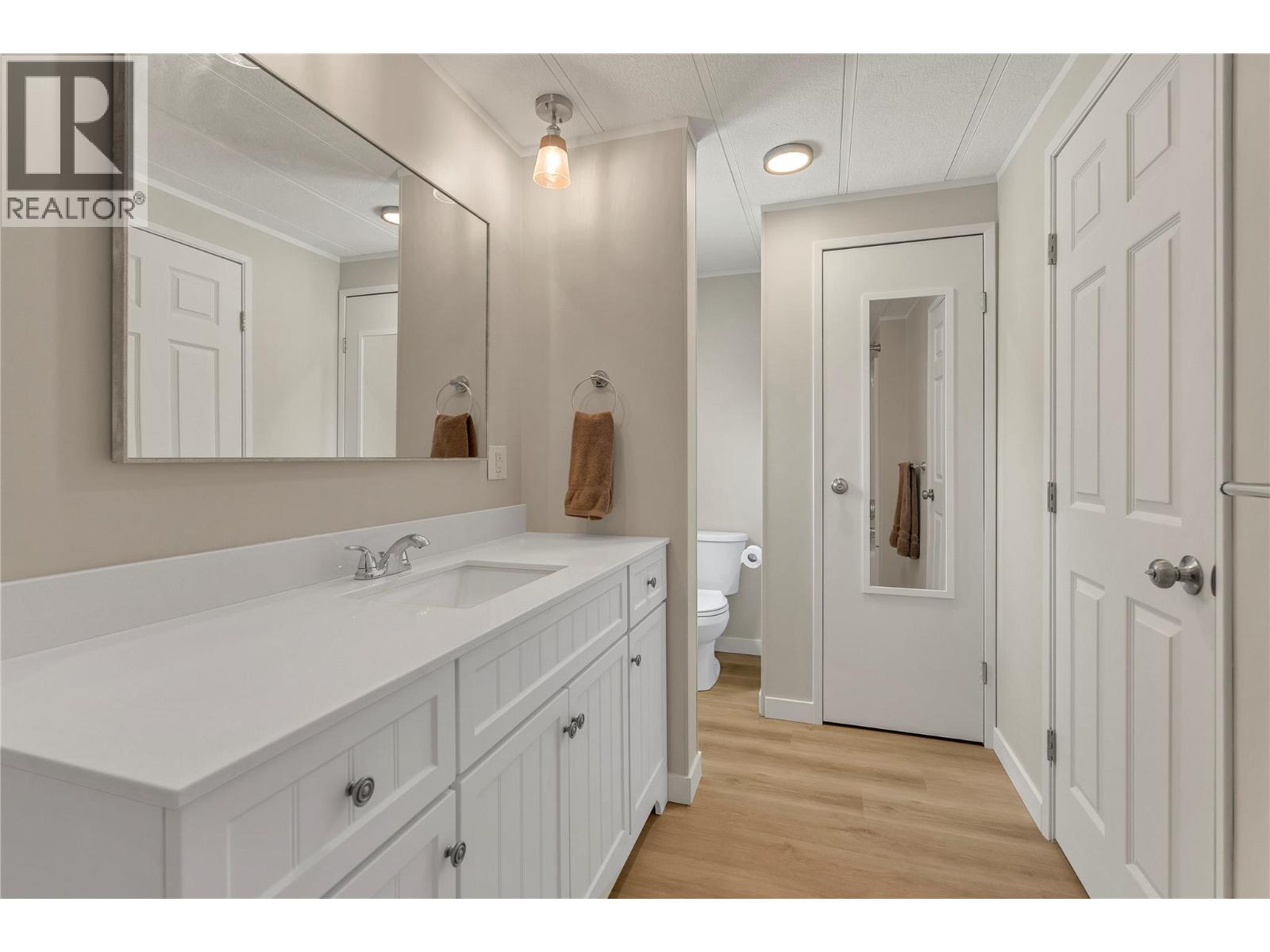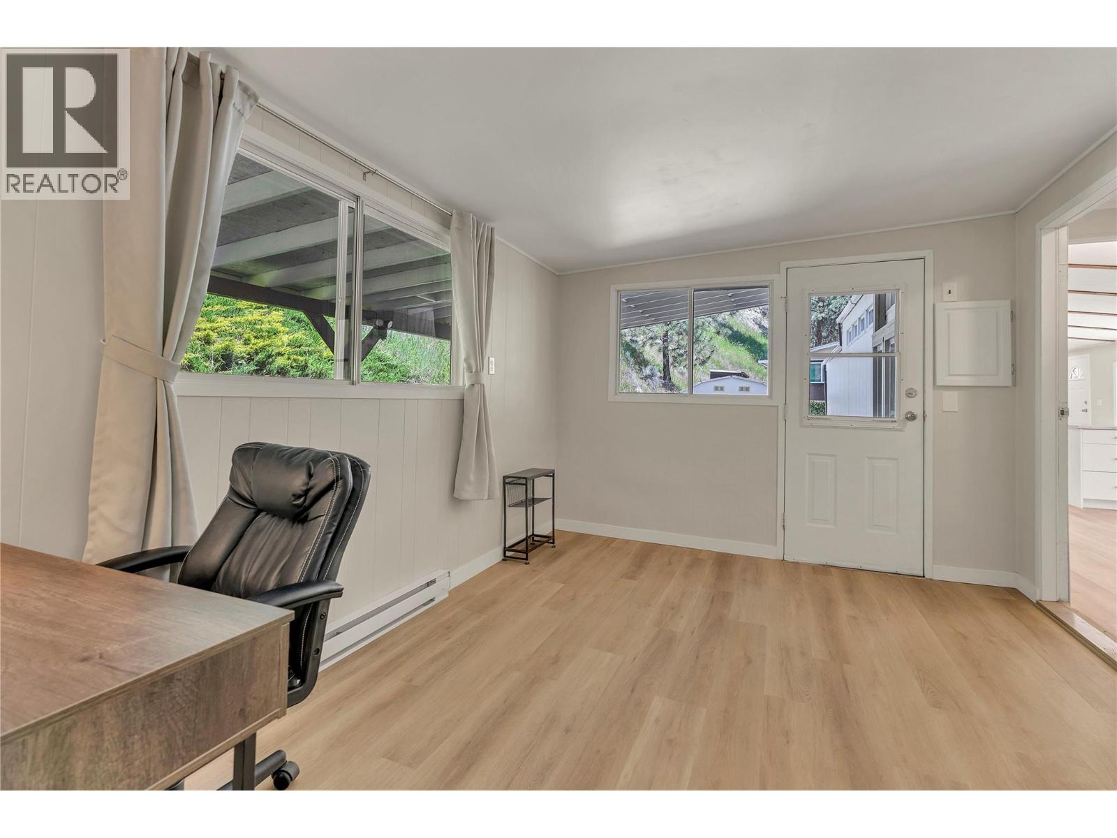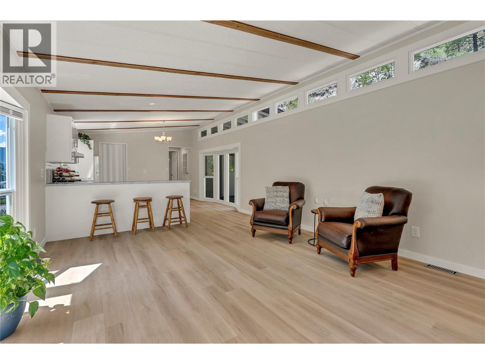 Welcome to Pleasant Valley, one of the most unique mobile home parks in the Okanagan—just a short, level drive to the heart of Penticton. Surrounded by nature and bordered by the ever-flowing, beautiful Penticton Creek, this park offers a peaceful setting unlike any other. This substantially renovated 3-bedroom, 2-bathroom home is tucked away in a private, low-traffic area across the creek, where the soothing sound of water and the natural surroundings create a serene atmosphere. The home feels far from a typical mobile, with its high shed-style ceilings, abundant natural light, and absence of narrow hallways. Inside, the impressive renovations include a new kitchen and bathrooms, updated flooring throughout, fresh interior and exterior paint, modern light fixtures, and plumbing. Outside, the spacious yard is ideal for outdoor living and hobbies, featuring a large covered deck, a flat and private backyard, and even a small patio area overlooking the creek. There is ample parking, and the park also offers RV parking (subject to availability and a monthly fee). Pleasant Valley is a well-managed 55+ community that allows two pets (size restrictions apply).