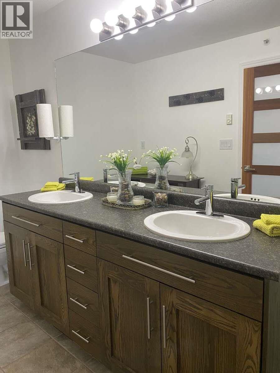 *** For more information, please click Brochure button. *** Prime 2-storey top floor condo spanning an impressive 2007 sq. ft. in a boutique style 3-storey 27 unit building. This rare gem offers unparalleled privacy, abundant natural light with southern exposure and a sense of spaciousness rarely found in downtown Kelowna. Extensive updated renovations that include fresh paint, sleek vinyl plank flooring, modern doors, window blind coverings, modern light fixtures, central vacuum system, built in Murphy bed with pantry cabinets, bonus storage room on the second level with 20' of pantries floor to ceiling and 12' of closet storage. Generous kitchen spanning 10' x 18' of cabinets with a 9' island boasting new appliances, cabinet hardware, soft close doors & drawers, sink and faucet, counter island with additional new cabinets, backsplash and hood fan. Soaring 20' ceilings that create a dramatic open concept flowing into the expansive living area - perfect for entertaining or relaxing. An indulgent 1 bedroom + 3 full bathroom layout, ideal for those seeking luxurious space. 12' x 9' generous sized balcony with natural gas BBQ hook up. Mechanical room is located on the balcony complete with a new A/C coil. In-suite new washer & dryer. Location is everything here, steps from downtown restaurants, entertainment, cultural scene and the lake. Very conveniently close to Kelowna General Hospital. Enjoy beaches, boardwalks parks, bike paths and trails-all without needing a car.