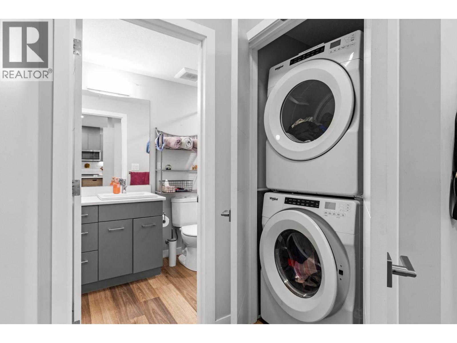 Welcome to Glenmore Central! This bright and spacious modern 2-bedroom, 2-bathroom apartment offers an ideal blend of comfort, style, and convenience. The thoughtfully designed layout features bedrooms on opposite sides of the unit, providing excellent privacy, along with in-suite laundry, forced-air heating, and air conditioning. Large windows flood the space with natural light, creating an open and inviting atmosphere. A separate storage locker provides additional storage convenience. Residents can enjoy a fantastic rooftop patio complete with BBQs and a firepit—perfect for relaxing or entertaining. The location is ideal for UBCO students, just a short drive away, and offers easy access to downtown restaurants, shopping, and year-round events. Building amenities include a dog washing station, bike storage, a versatile event room for special occasions, and secure underground parking. Pet-friendly and exceptionally well maintained, this unit offers outstanding value. Don’t miss your opportunity—schedule your viewing today!
