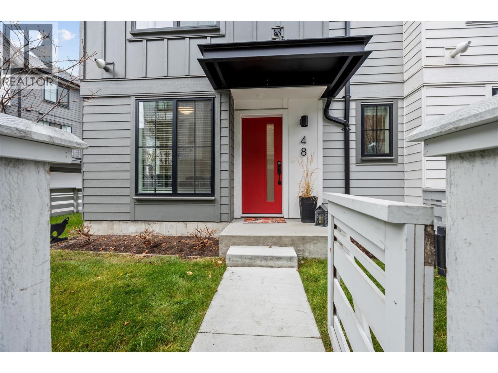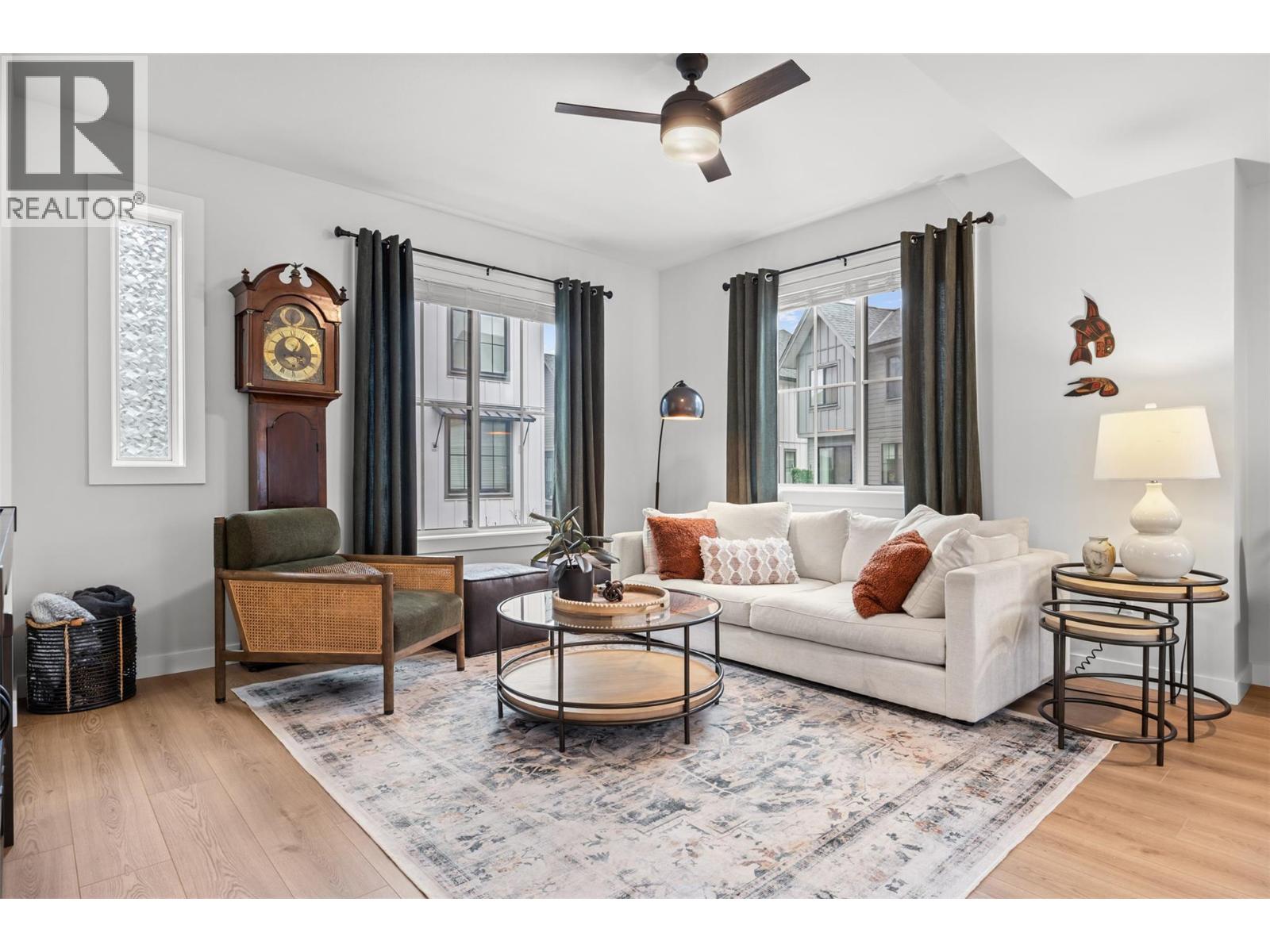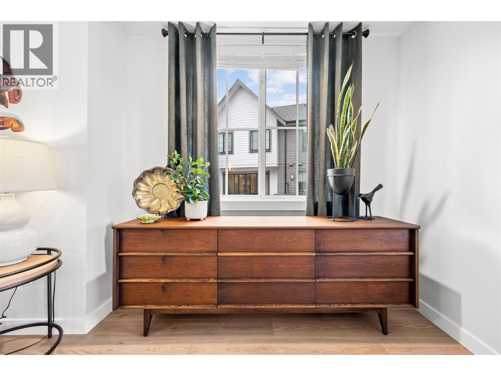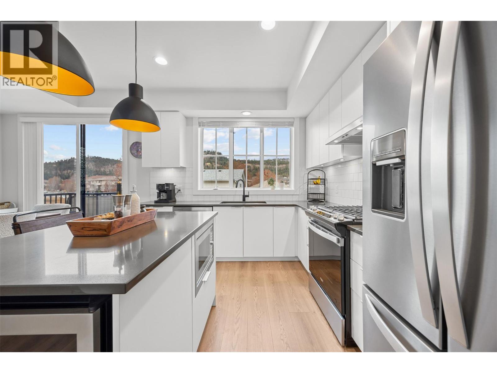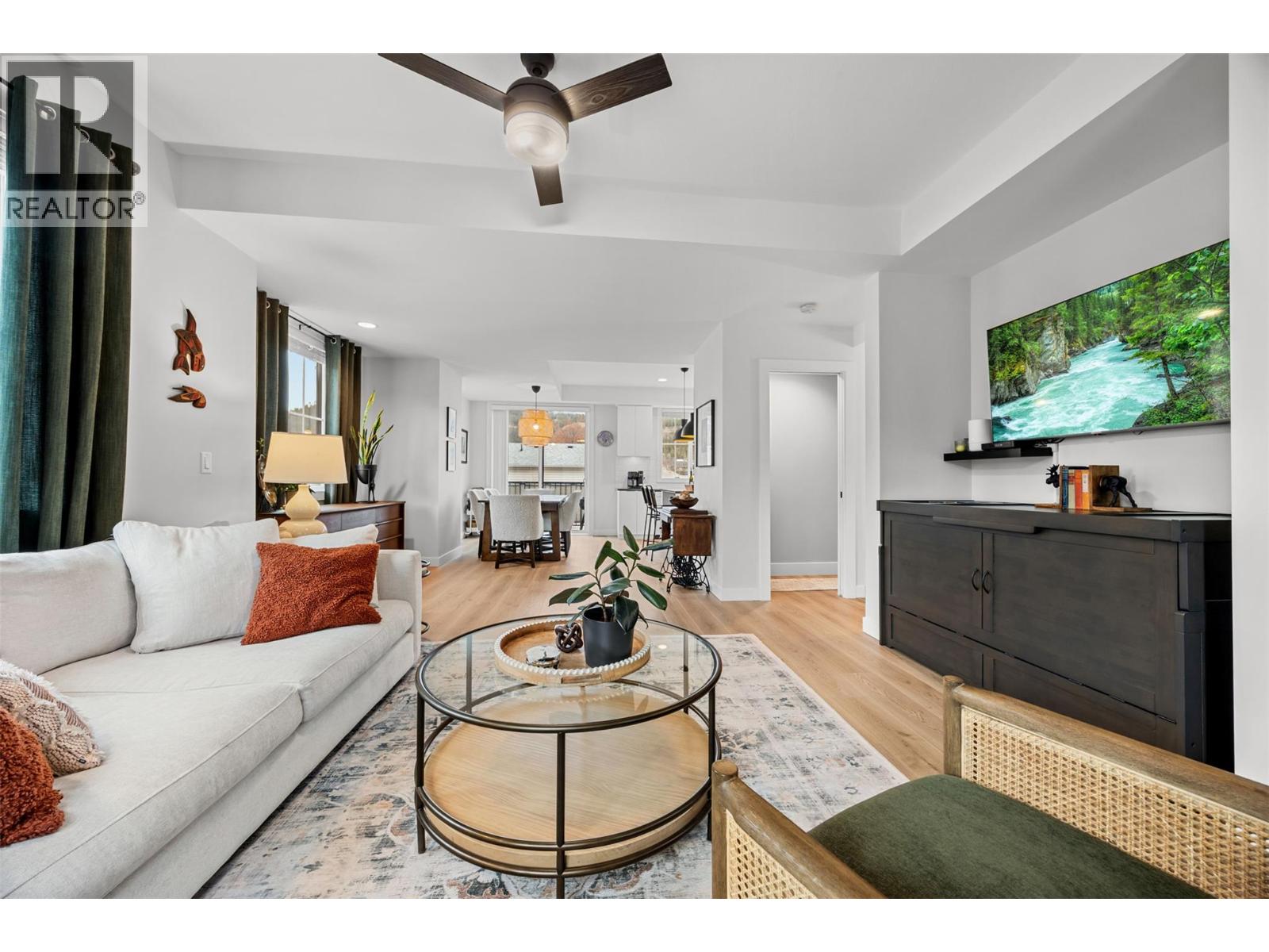 Step into bright, modern living with this beautifully upgraded 3-bedroom + den, 2.5-bath end-unit townhome in the heart of Glenmore. With extra windows and only one shared wall, this home is filled with natural light and offers the feel of a detached home - without the upkeep. (The strata even cuts your grass!) The main level is designed for effortless living and entertaining, featuring an open-concept layout, quartz countertops, stainless steel appliances, and a generous island. From the dining area, step onto your private balcony with serene mountain views - perfect for coffee at sunrise or evening unwinding. A convenient main-floor den creates the ideal office or flex space. Upstairs, find three spacious bedrooms, including a bright primary suite with a walk-in closet and a modern ensuite with heated flooring. Additional features include side-by-side laundry, ample storage, an attached garage plus driveway parking, and a welcoming front entry. Located in a highly desirable Glenmore community just minutes to shops, cafes, parks, schools, and the airport, this home offers unbeatable convenience and lifestyle. With the neighbourhood evolving under newly approved MF3r zoning, the area is positioned for ongoing growth and long-term appeal. A stylish, spacious, pet-friendly townhome—perfect for families, professionals, dog lovers, or investors seeking exceptional value in one of Kelowna’s most vibrant neighbourhoods.
