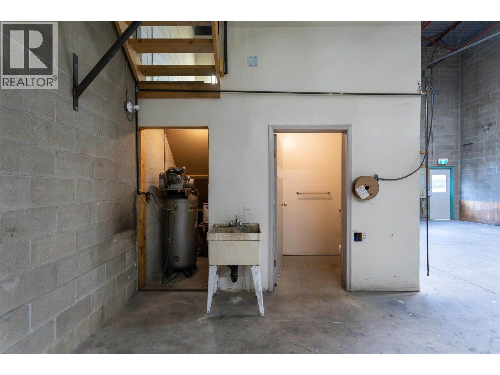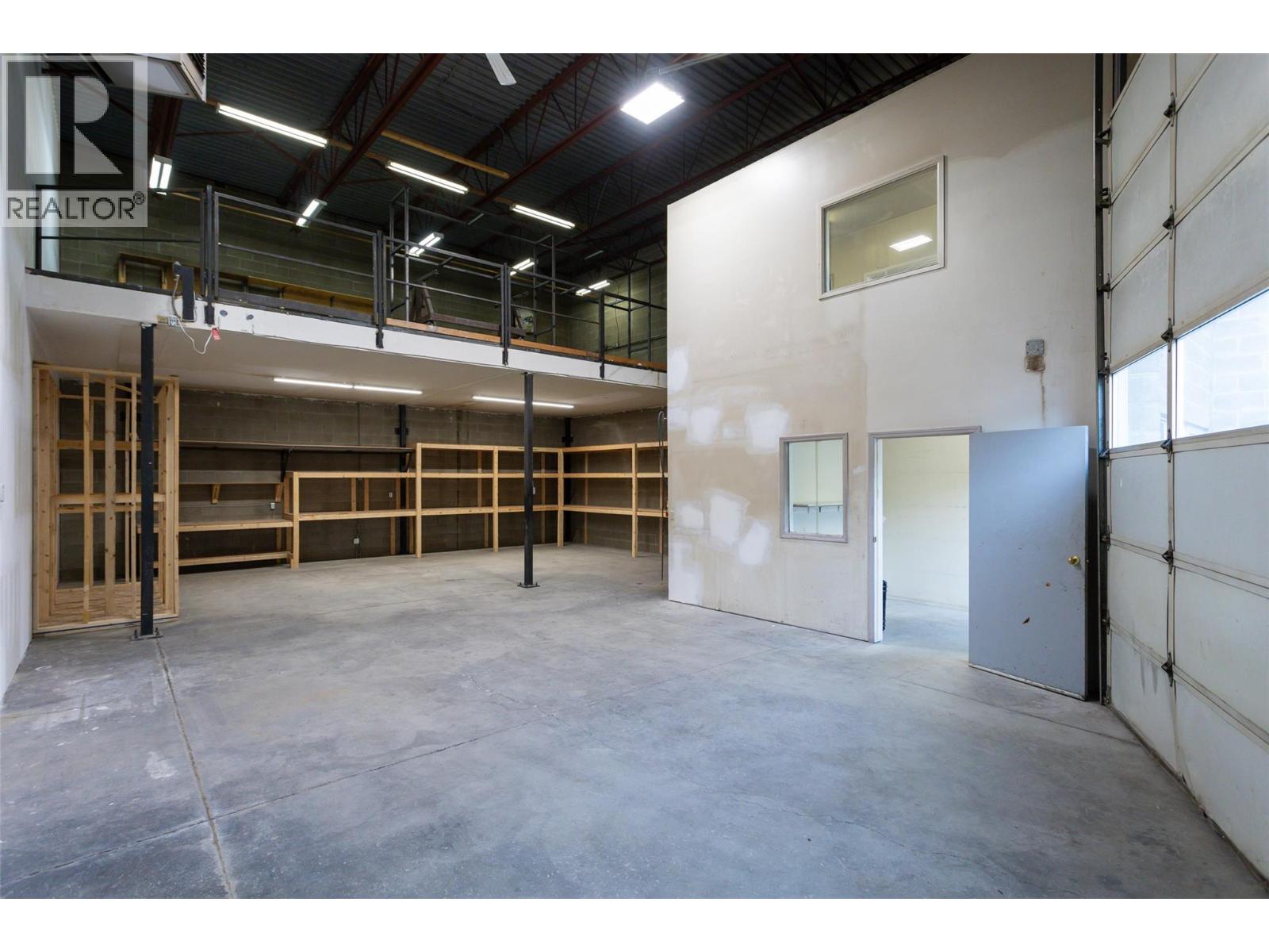 Fantastic lease rate! Excellent light industrial unit with concrete mezzanine, bathroom and office space. Unit has a compressor with good distribution lines. Large overhead door and two man doors on front of unit. Very easy and convenient access.. Heated via baseboards and overhead ceiling unit.