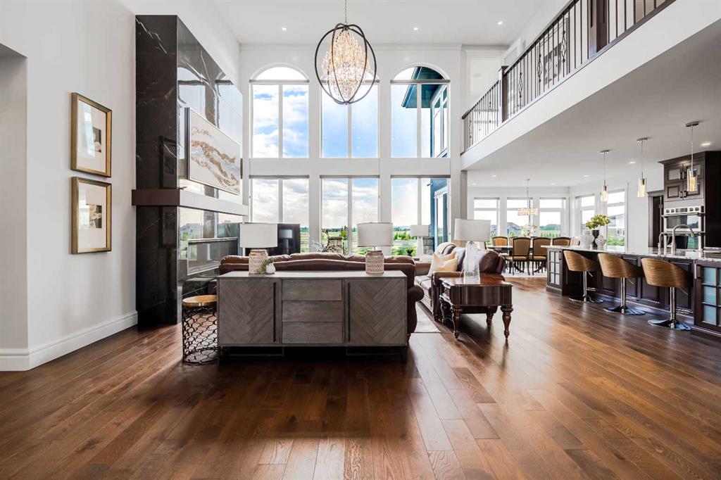 Welcome to Windhorse Manor, where refined luxury meets awe-inspiring mountain views. Built in 2020, this architectural showpiece offers a total of 7,954.4 square feet (including basement) of impeccably crafted living space, including a fully finished basement. With 6 bedrooms and 8 bathrooms, every inch of this home exudes elegance, functionality, and thoughtful design. Step into the grand foyer and be greeted by an open-to-below layout that frames the panoramic Rocky Mountain backdrop—an ever-changing masterpiece visible from every angle. Expansive windows bathe the home in natural light, highlighting the exceptional craftsmanship and timeless finishes throughout. At the heart of the home lies a gourmet kitchen designed for culinary excellence, featuring top-tier built-in appliances, an oversized island, and a separate spice kitchen. 9-foot ceilings and engineered hardwood floors create an airy, sophisticated atmosphere ideal for everyday living and entertaining alike. Host with ease on the spacious deck and patio, complete with a BBQ gas line—perfect for summer gatherings and alfresco dining. Downstairs, discover a full entertainment oasis: a private home theatre, home gym, recreation room, and wet bar, complemented by a stunning wine cellar. There’s even space allocated for your very own sauna retreat. Car enthusiasts will appreciate the heated triple car garage plus a dedicated RV garage, offering ample room for all your vehicles and toys. Every detail of this home has been curated to enhance your lifestyle. Nestled in the prestigious, serene community of Windhorse Manor, this estate combines tranquility with convenience—set against the beauty of Alberta’s natural landscape. Don’t miss your chance to own this truly unparalleled residence. Contact us today to book your private showing and step into the luxury of Windhorse Manor.